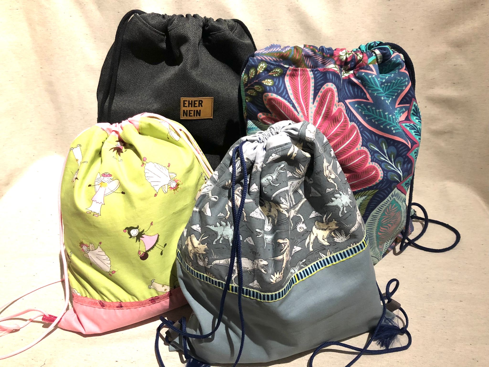 Turnbeutel gehen immer. Für Wechselkleidung im Kindergarten, für das Nötigste unterwegs oder als ständiger Begleiter. Ganz schlicht oder vielleicht doch mit Innentasche und Boden. ![]() |